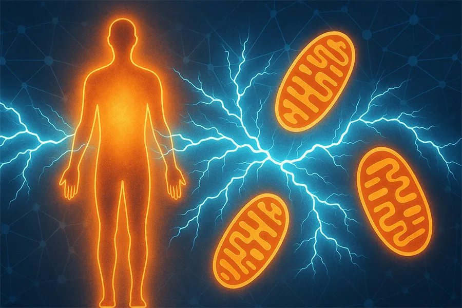 De basis van dit hele systeem ligt in je mitochondriën, de kleine energiefabrieken in elke cel. Zij zetten voedingsstoffen om in ATP, de energiebron voor vrijwel alles wat je lichaam doet. In een gezond systeem lopen elektronen soepel door de electron transport chain. In de praktijk ontstaat er weerstand door stress, schade aan celmembranen of veroudering. Dat zorgt voor energielekken, oxidatieve stress en een hoger energieverbruik om dezelfde prestaties te leveren. Bij het ouder worden daalt de efficiëntie van mitochondriën, waardoor spieren meer brandstof moeten gebruiken om hetzelfde werk te doen. Deze extra weerstand wordt zelfs gezien als een belangrijke motor achter bekende verouderingsprocessen zoals ontstekingen, genoomschade en minder goed herstel.